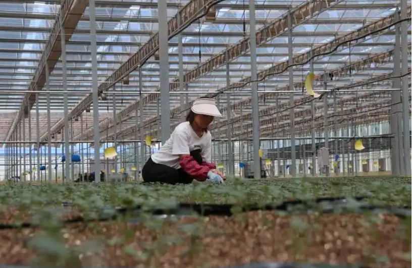 大棚内铺上防草布;正在定制的穴盘放入蛭石土;安拆节水省肥的滴灌系统;移栽微型薯种苗……颠末3个月的忙碌,昔时9月送来丰收季,梁肖刚试种的新品种“膏壤”一粒就买到0。45元,一个占地460平方米的大棚平均利润达到2万元,让村平易近看到了新但愿。本年,随下落花营村成立“大型微型薯园区”,微型薯种植曾经拓展到135个大棚。一个月后,1400万株种苗将从本地组培核心移栽到这里。眼下,为抢抓农时,仍不竭有人找到梁肖刚,提出承包大棚的意向,让这些闲置的大棚又焕发出新的朝气。