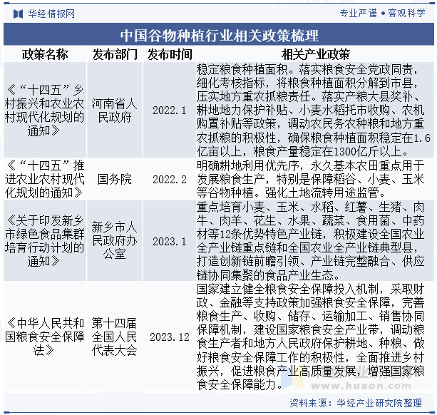 本文节选自华经财产研究院发布的《2023年中国谷植行业成长示状阐发,谷物播种面积下降,产量上涨,夏粮喜获丰收「图」》,如需获取全文内容,可进入华经谍报网搜刮查看。中国一曲高度注沉农业的成长,出台了一系列支撑政策,包罗农田根本设备扶植、农业机械化补助、农业安全等。这些政策旨正在提高谷植的效率和产量,保障农人的收入。中国通过实施最低收购价政策、粮食储蓄政策以及进口配额等办法,确保国内谷物供应的不变和充脚。同时,通过添加对农业科技的投入,提高谷物的自给自脚能力。