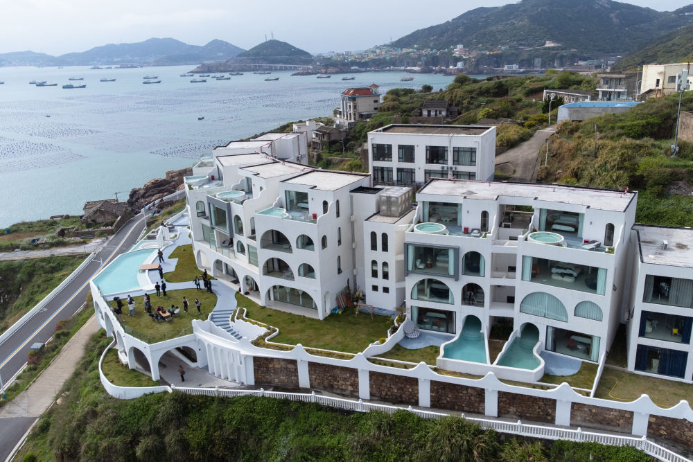 2024年4月21日正在浙江省舟山市嵊泗县泗洲塘村拍摄的共富平易近宿集聚区(无人机照片)。近年来,嵊泗县持续推进“万万工程”斑斓海岛渔村扶植,通过渔村整治、节点景不雅提拔、休闲街区打制等办法将海岛美景串珠成链。发(姚凯乐 摄)。